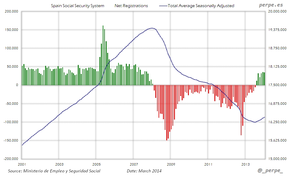 Afiliados a la Seguridad Social en España desde 2001 / Registrations in Social Security in Spain since 2001 Posted 12 March, 2014 by perpe