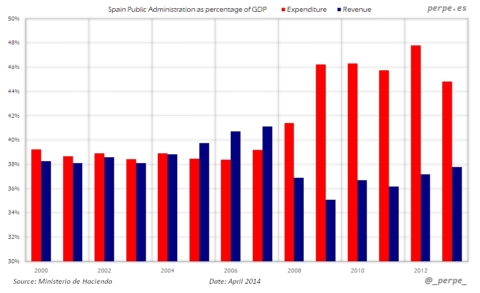 Gasto e ingreso público en España desde 2000 / Public expenditure and revenue in Spain since 2000 Posted 3 April, 2014 by perpe