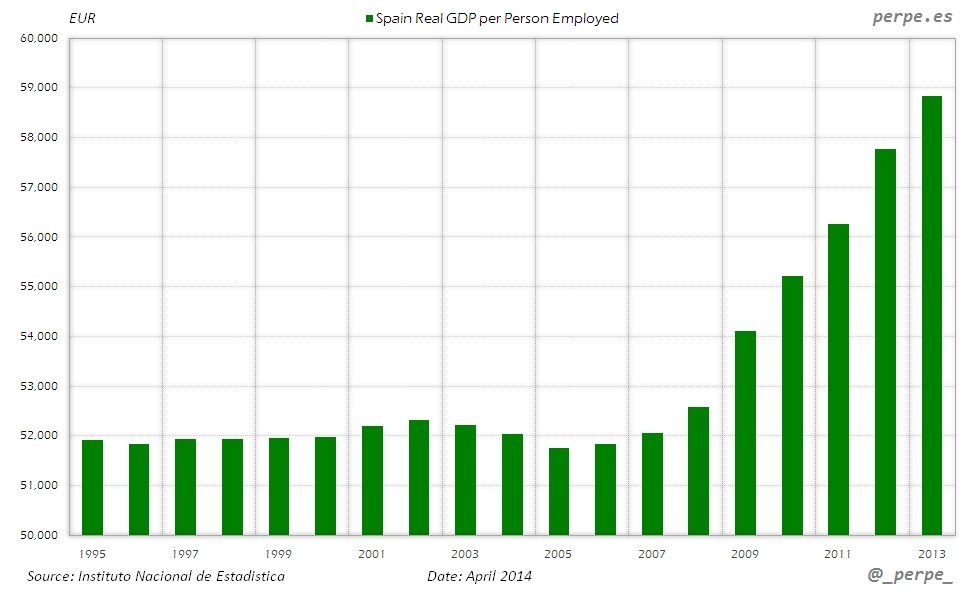 PIB por persona empleada en España desde 1995 / GDP per person employed in Spain since 1995 Posted 8 April, 2014 by perpe