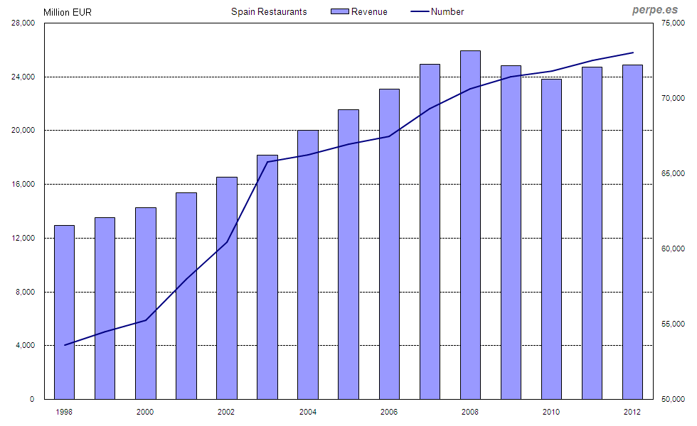 Ventas y número de restaurantes en España desde 1998 / Revenue and number of restaurants in Spain since 1998 Posted 24 November, 2013 by perpe