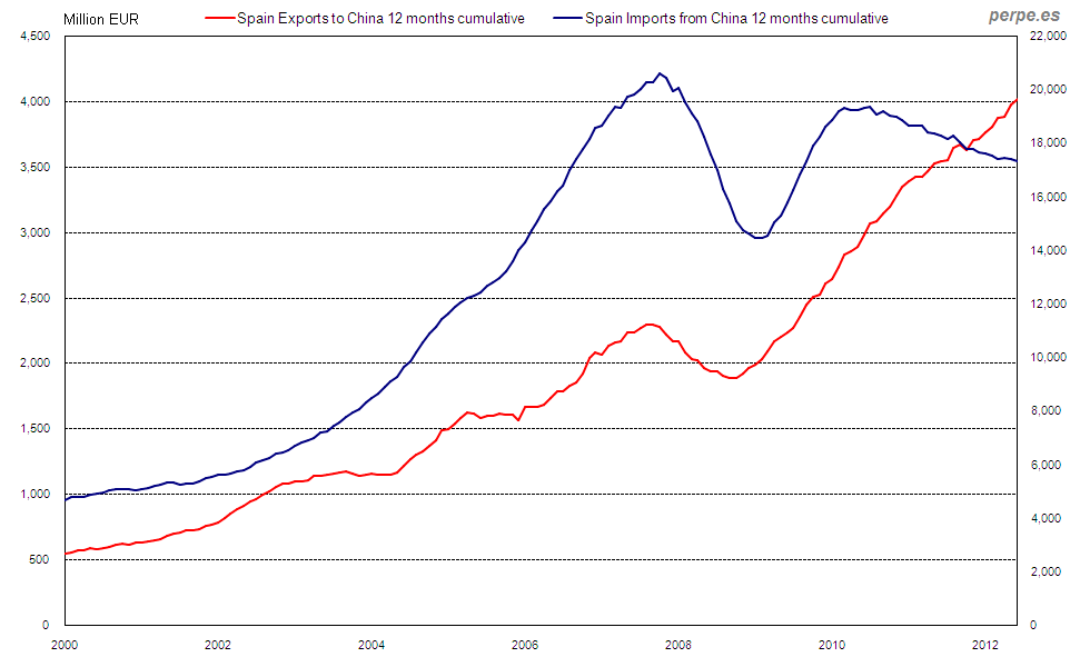 Exportaciones e importaciones en España con China desde 2000 / Exports and imports in Spain with China since 2000 Posted 22 August, 2013 by perpe