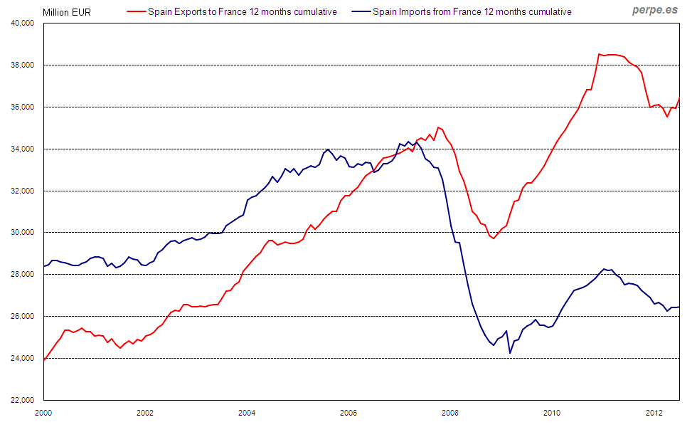 Exportaciones e importaciones en España con Francia desde 2000 / Exports and imports in Spain with France since 2000 Posted 2 September, 2013 by perpe