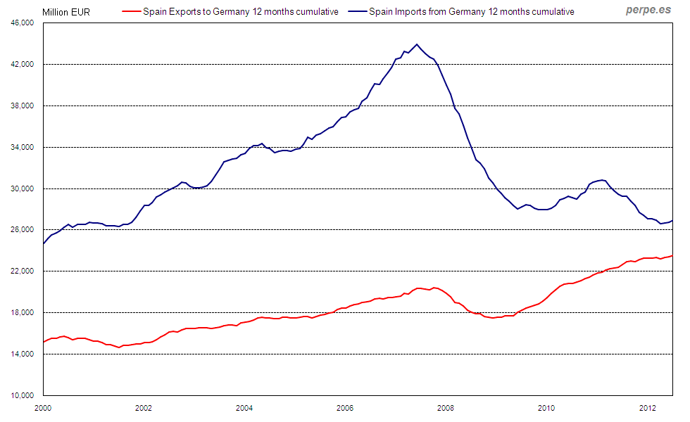 Exportaciones e importaciones en España con Alemania desde 2000 / Exports and imports in Spain with Germany since 2000 Posted 5 September, 2013 by perpe