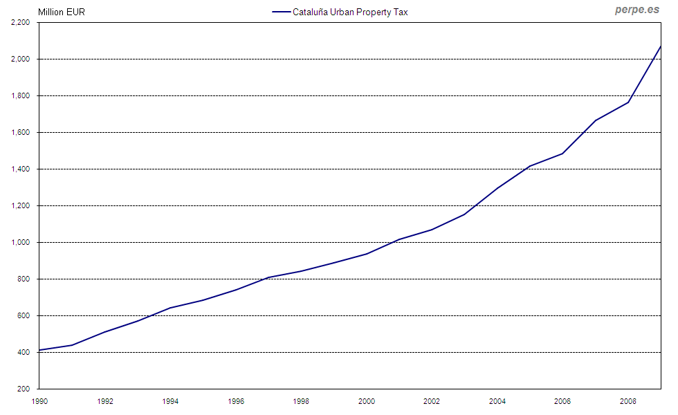 Recaudación por IBI en Cataluña desde 1990 / Real estate tax revenue in Catalonia since 1990 Posted 17 October, 2012 by perpe