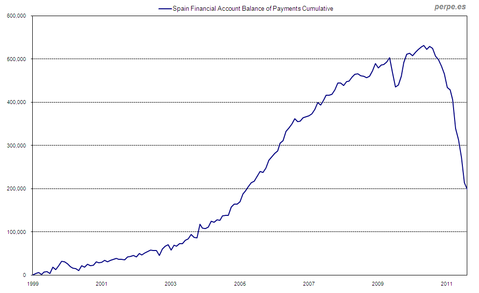 Balanza financiera acumulada en España desde 1999 / Financial account cumulative in Spain since 1999 Posted 15 October, 2012 by perpe