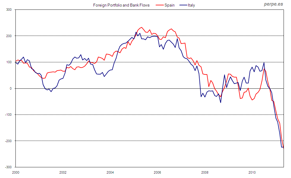 Salidas de capitales en España e Italia desde 2000 / Capital outflows in Spain and Italy since 2000 Posted 10 October, 2012 by perpe
