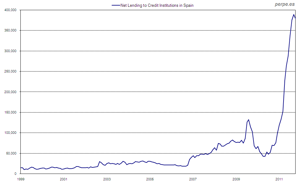 Préstamos del Banco Central Europeo a bancos en España desde 1999 / European Central Bank lending to banks in Spain since 1999 Posted 11 October, 2012 by perpe