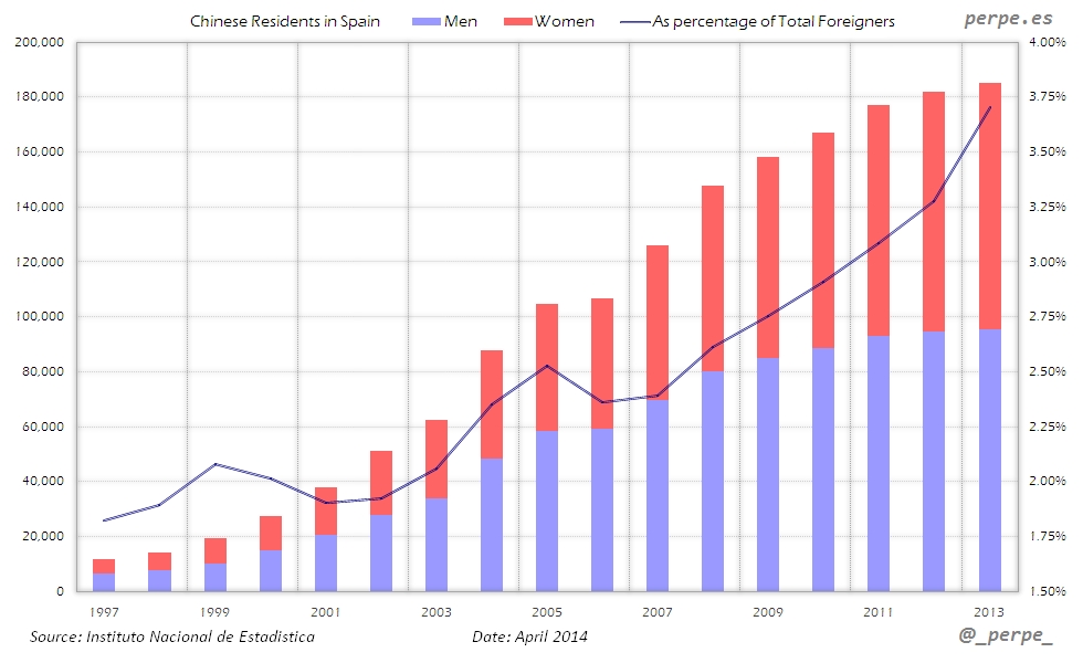 Residentes chinos en España desde 1997 / Chinese residents in Spain since 1997 Posted 23 April, 2014 by perpe