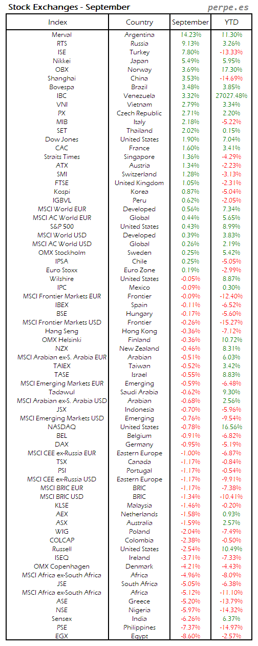 Bolsas Mundiales: Septiembre / World Stock Exchanges: September