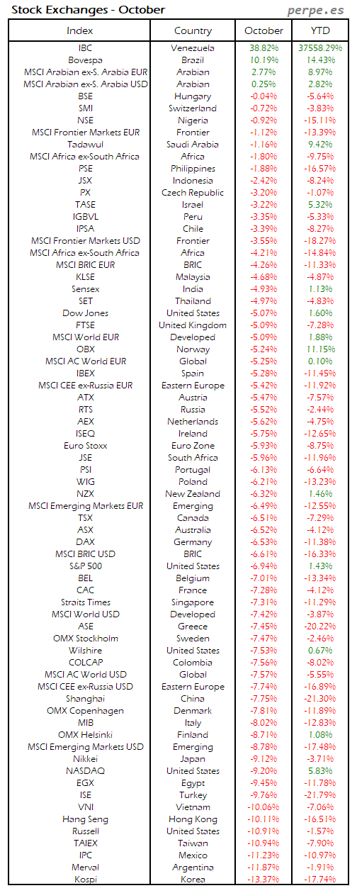 Bolsas Mundiales: Octubre / World Stock Exchanges: October