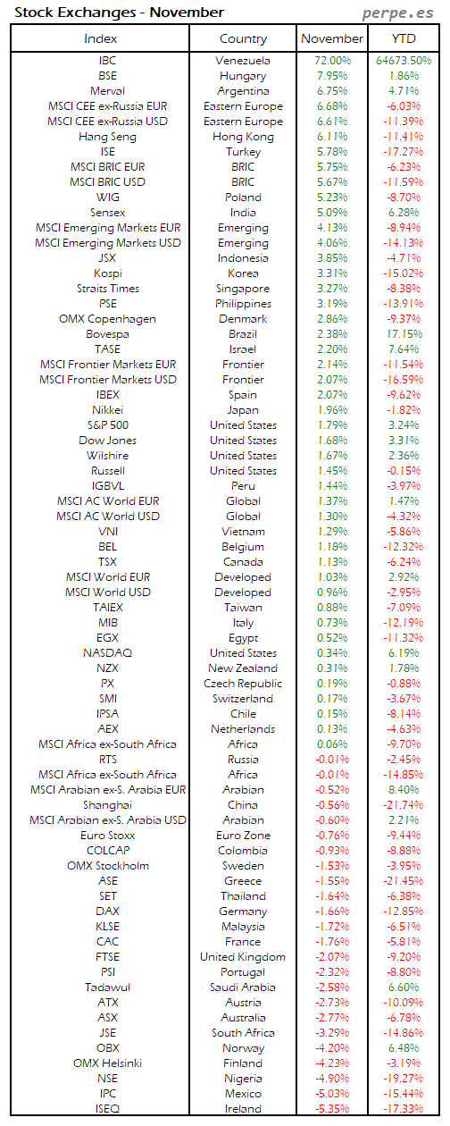 Bolsas Mundiales: Noviembre / World Stock Exchanges: November