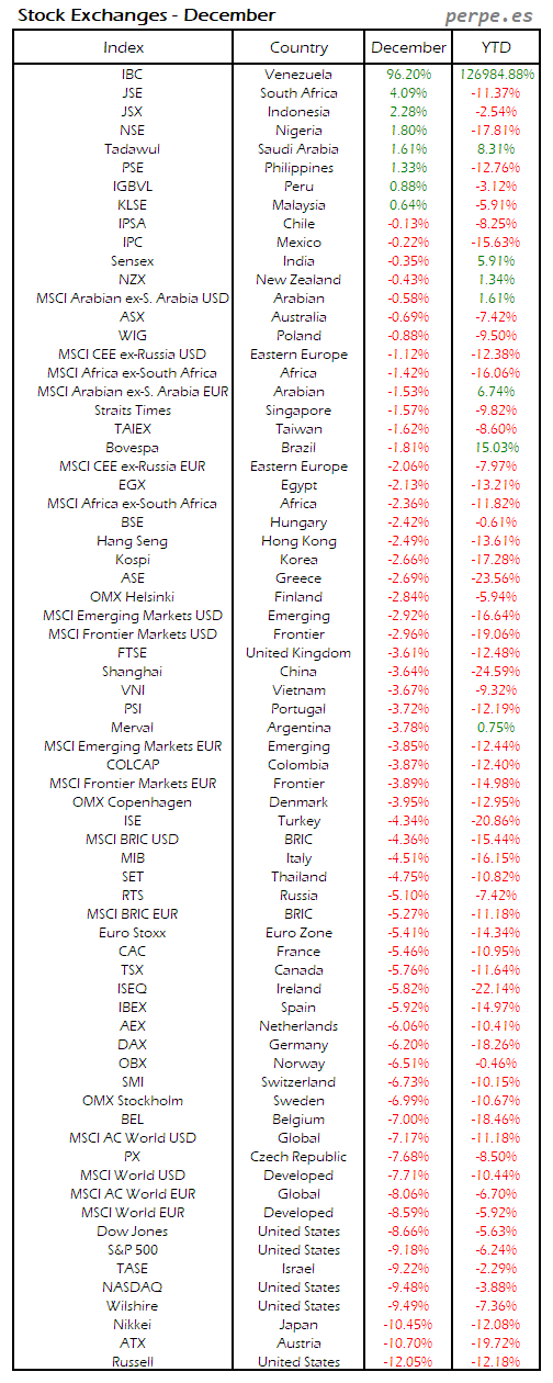 Bolsas Mundiales: Diciembre / World Stock Exchanges: December