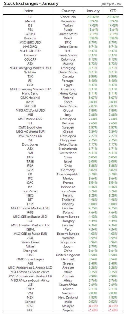 Bolsas Mundiales: Enero / World Stock Exchanges: January