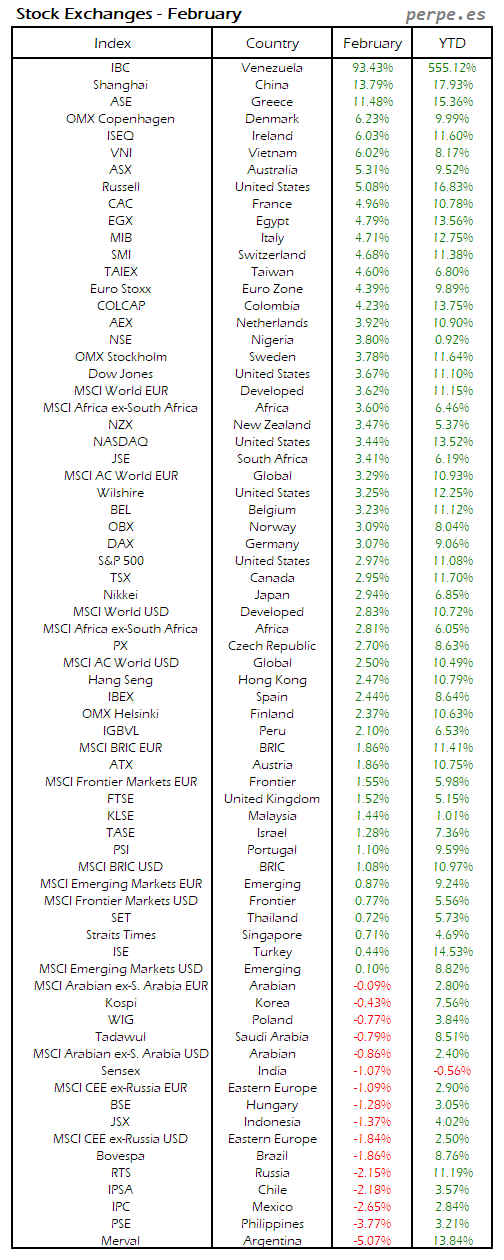 Bolsas Mundiales: Febrero / World Stock Exchanges: February