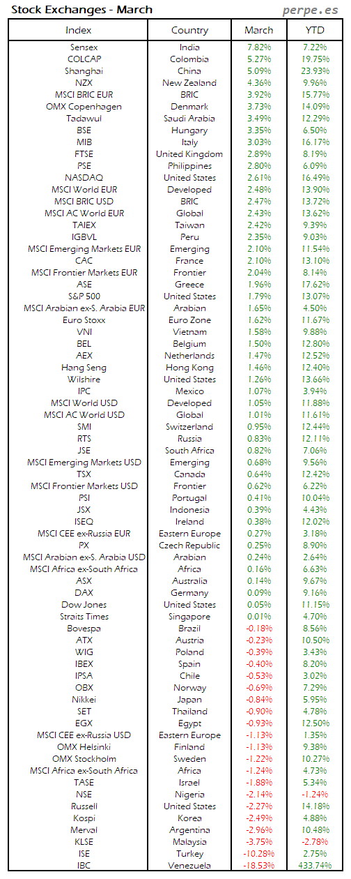Bolsas Mundiales: Marzo / World Stock Exchanges: March