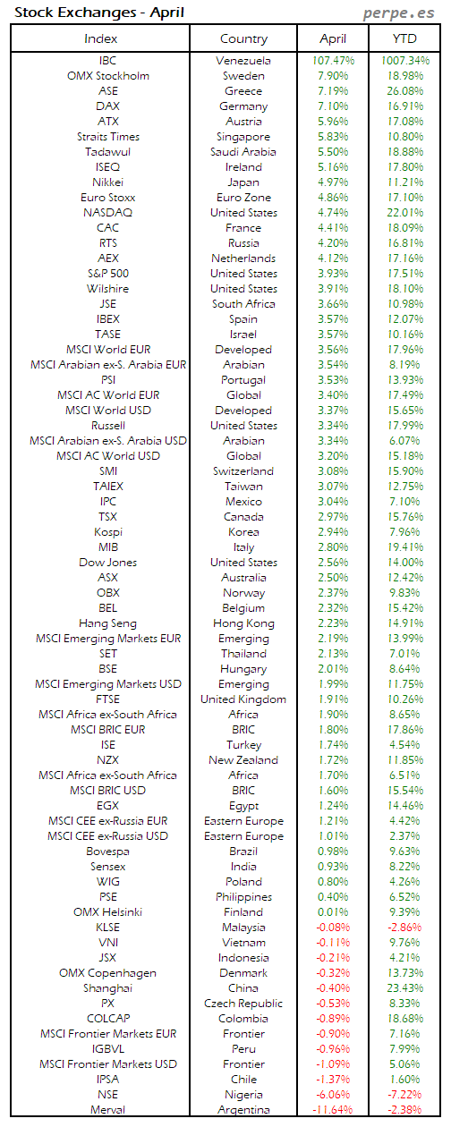 Bolsas Mundiales: Abril / World Stock Exchanges: April