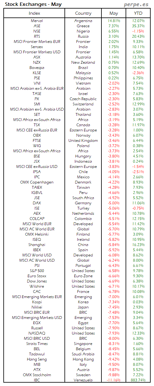Bolsas Mundiales: Mayo / World Stock Exchanges: May