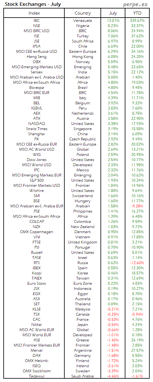 Bolsas Mundiales: Julio / World Stock Exchanges: July