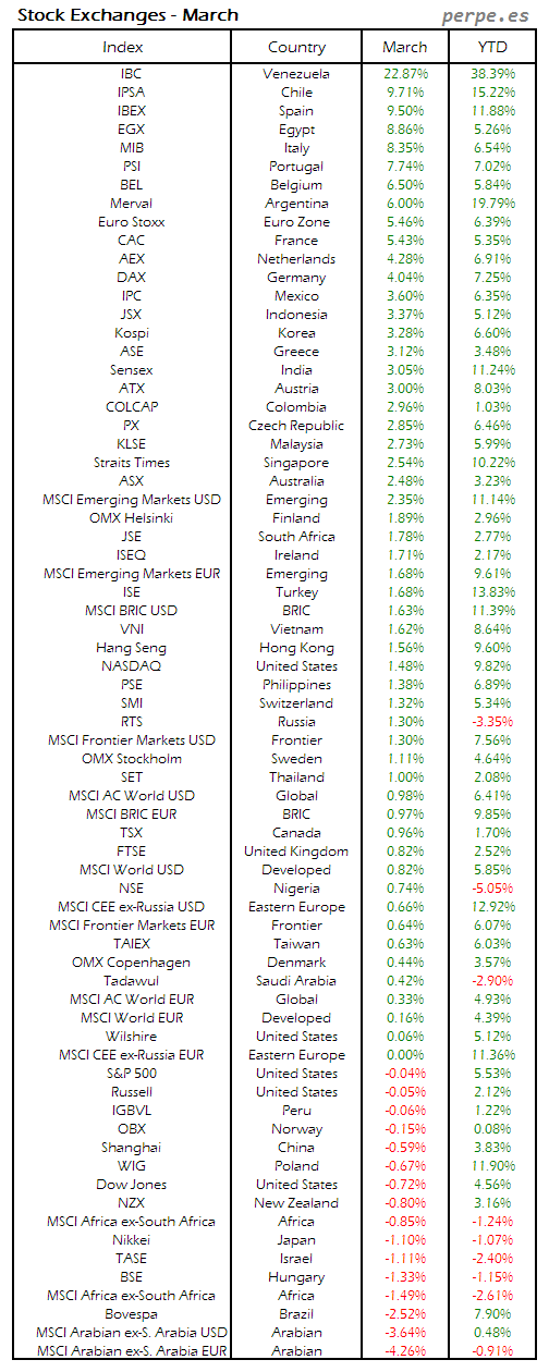 Bolsas Mundiales: Marzo / World Stock Exchanges: March