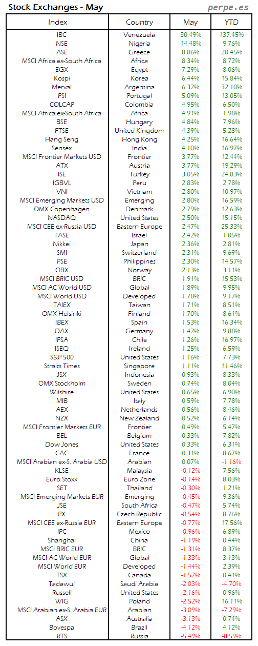 Bolsas Mundiales: Mayo / World Stock Exchanges: May