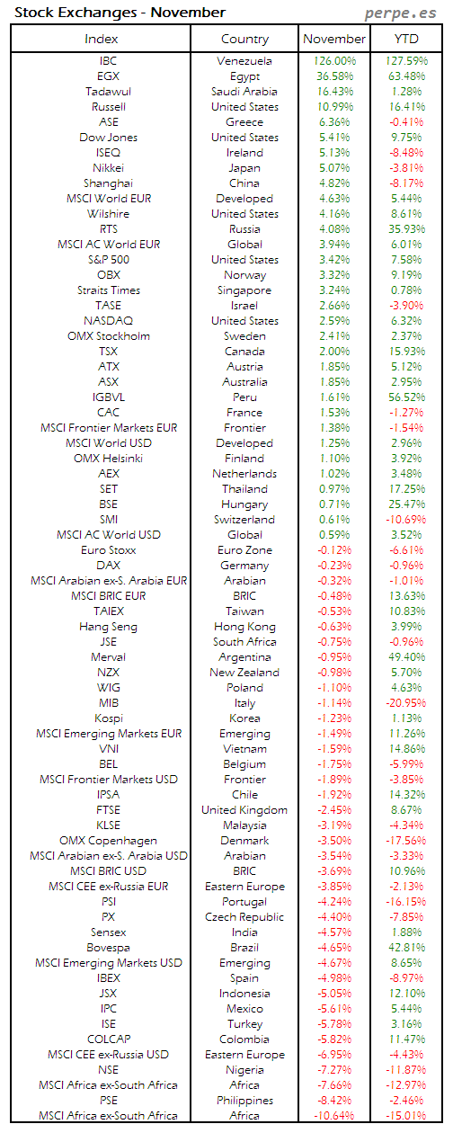 Bolsas Mundiales: Noviembre / World Stock Exchanges: November