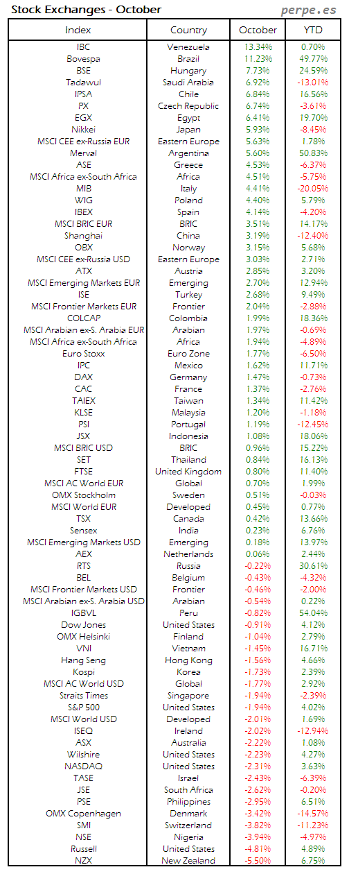 Bolsas Mundiales: Octubre / World Stock Exchanges: October