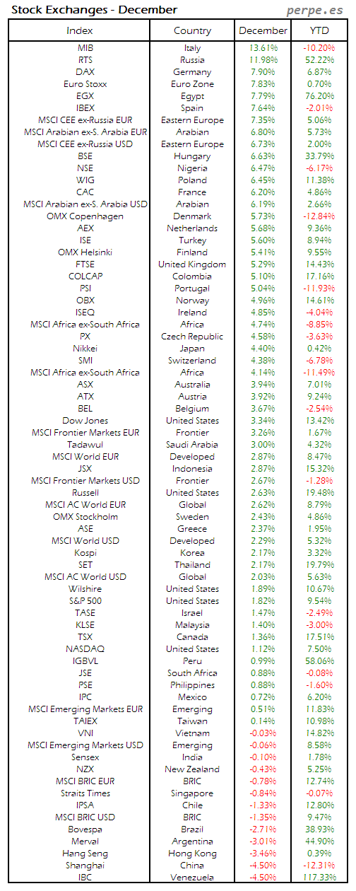 Bolsas Mundiales: Diciembre / World Stock Exchanges: December