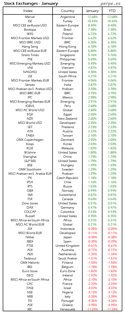 Bolsas Mundiales: Enero / World Stock Exchanges: January