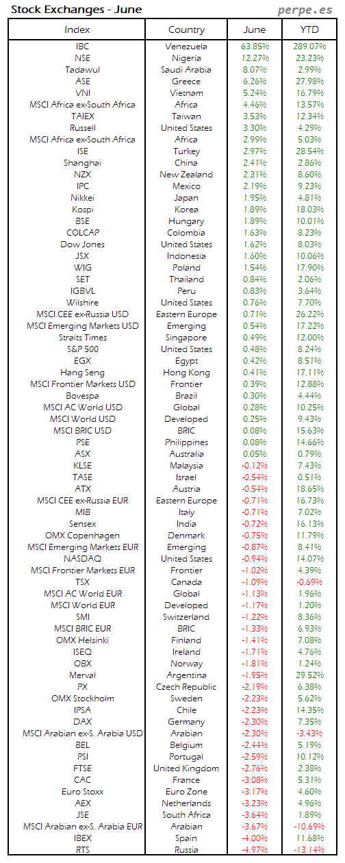Bolsas Mundiales: Junio / World Stock Exchanges: June