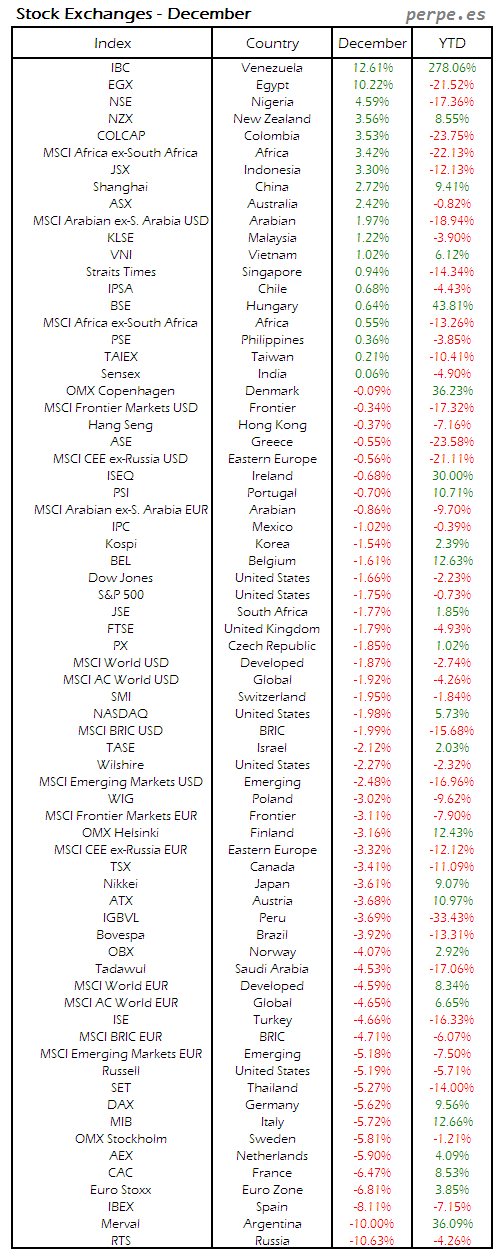 Bolsas Mundiales: Diciembre / World Stock Exchanges: December
