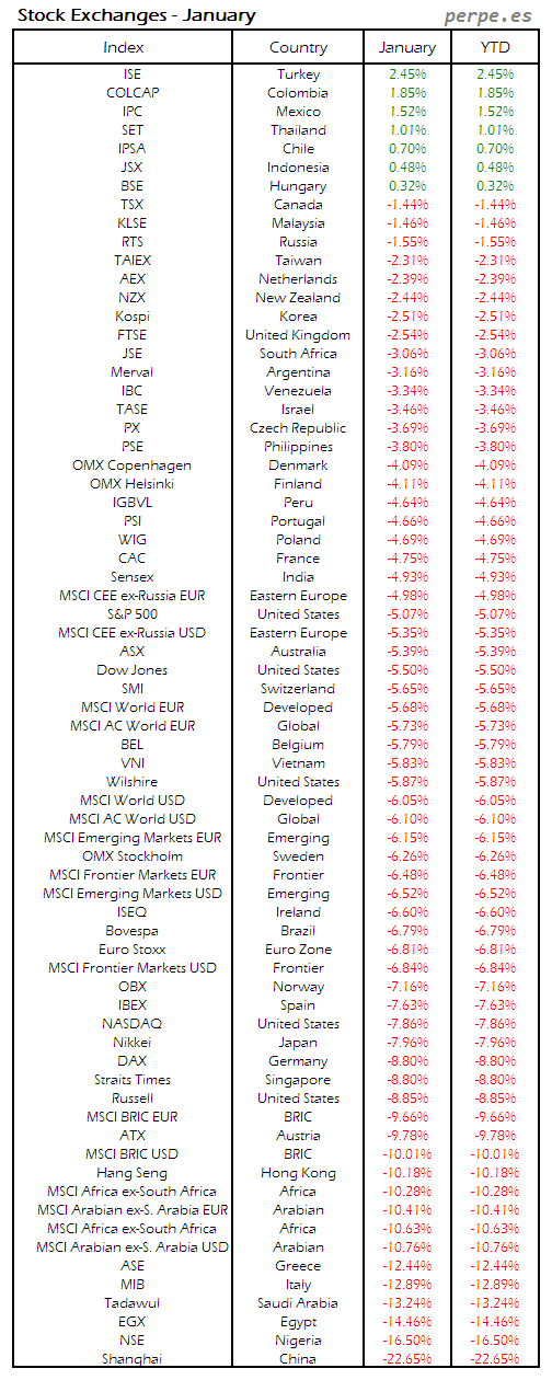 Bolsas Mundiales: Enero / World Stock Exchanges: January