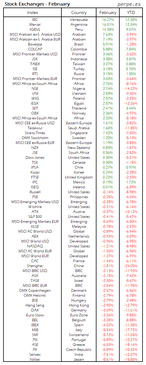 Bolsas Mundiales: Febrero / World Stock Exchanges: February