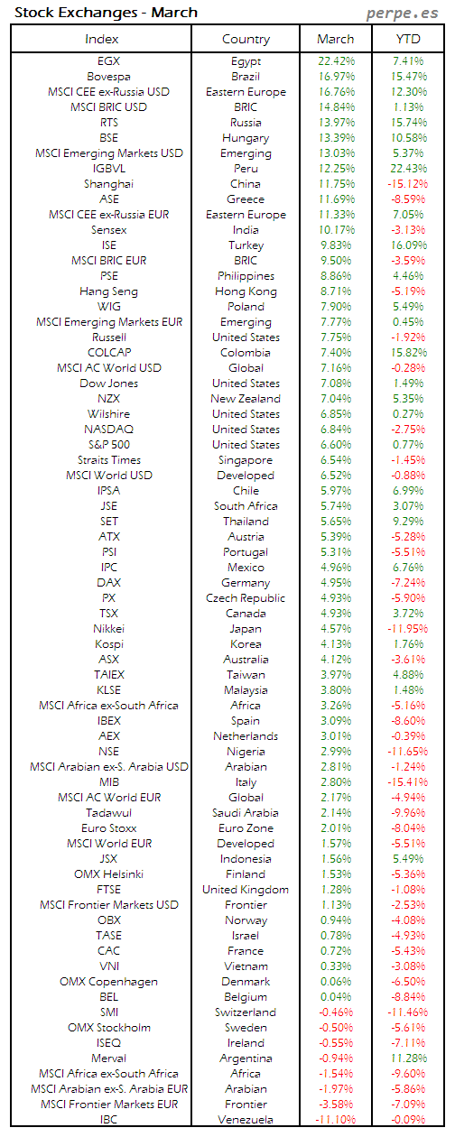 Bolsas Mundiales: Marzo / World Stock Exchanges: March