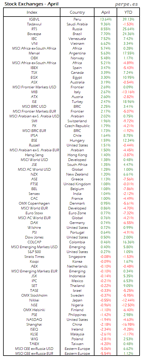Bolsas Mundiales: Abril / World Stock Exchanges: April