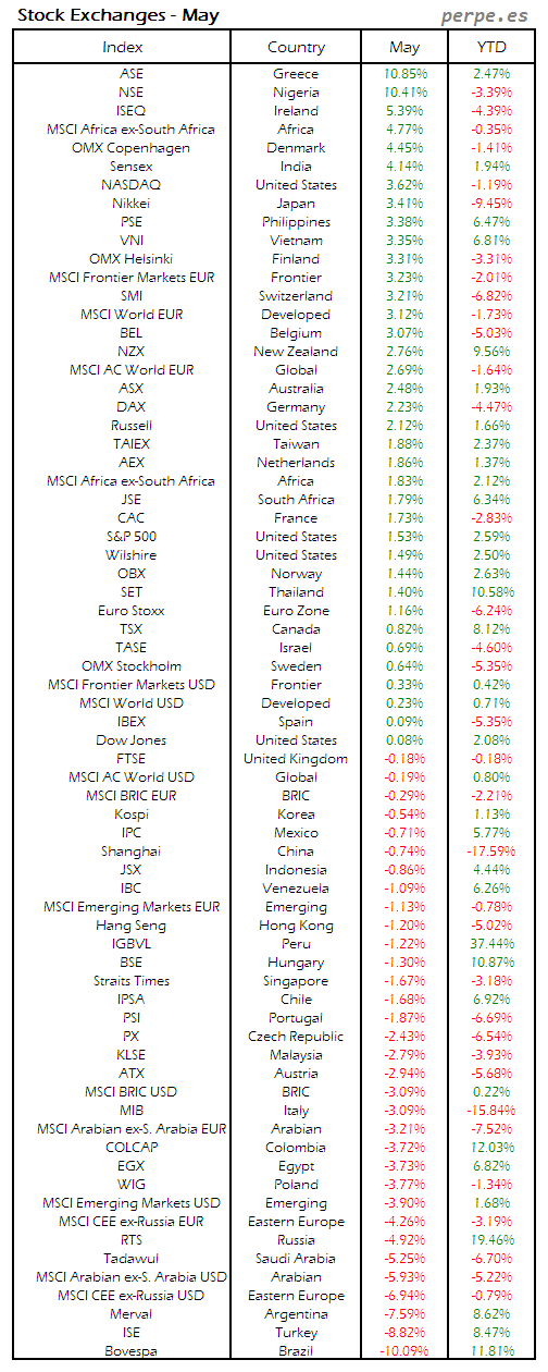 Bolsas Mundiales: Mayo / World Stock Exchanges: May