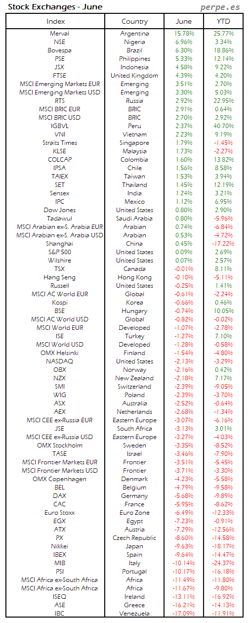 Bolsas Mundiales: Junio / World Stock Exchanges: June