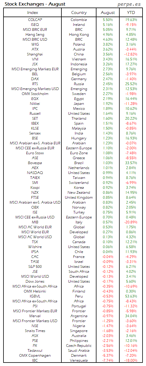 Bolsas Mundiales: Agosto / World Stock Exchanges: August
