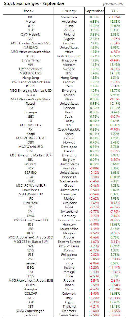 Bolsas Mundiales: Septiembre / World Stock Exchanges: September
