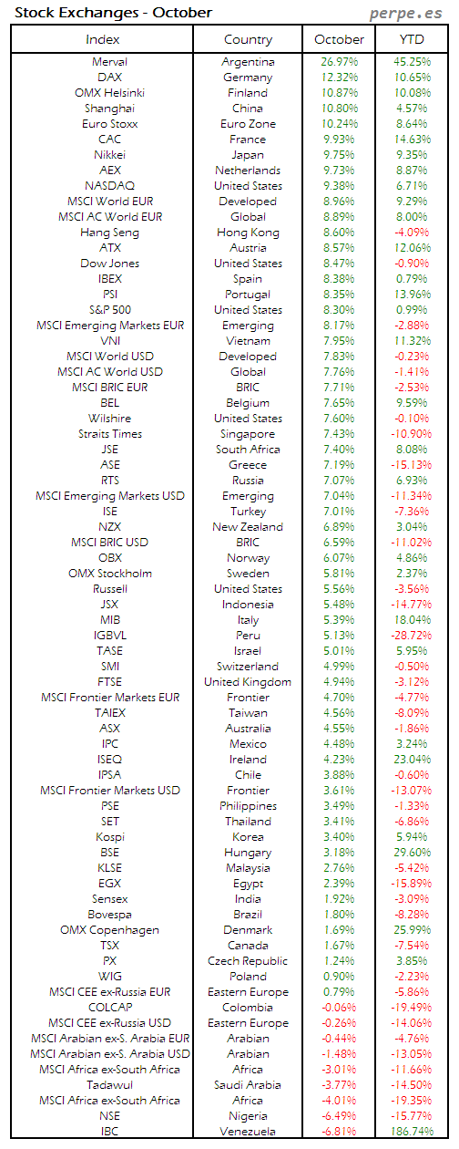 Bolsas Mundiales: Octubre / World Stock Exchanges: October