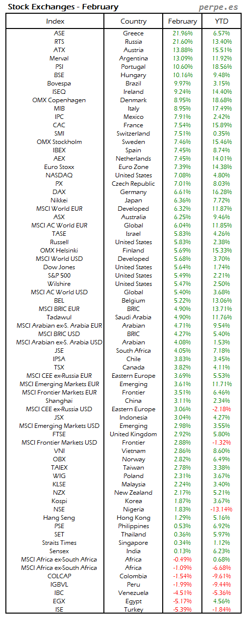 Bolsas Mundiales: Febrero / World Stock Exchanges: February