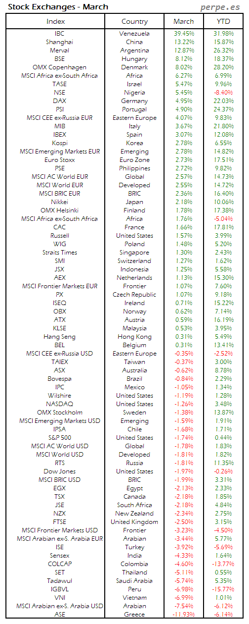 Bolsas Mundiales: Marzo / World Stock Exchanges: March