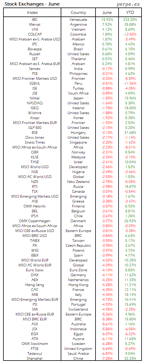 Bolsas Mundiales: Junio / World Stock Exchanges: June