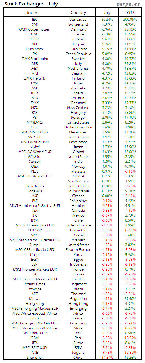 Bolsas Mundiales: Julio / World Stock Exchanges: July