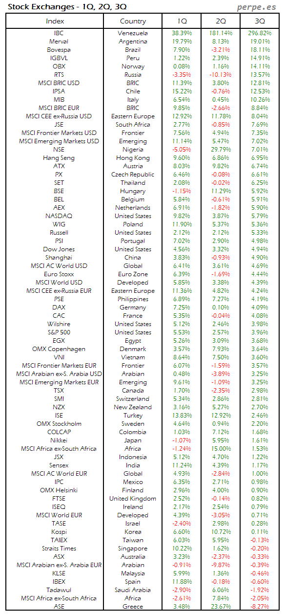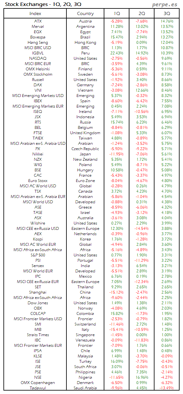 Bolsas Mundiales: Tercer Trimestre