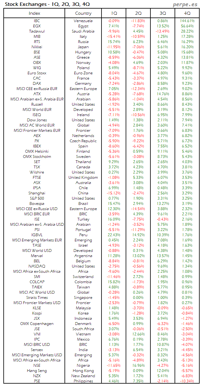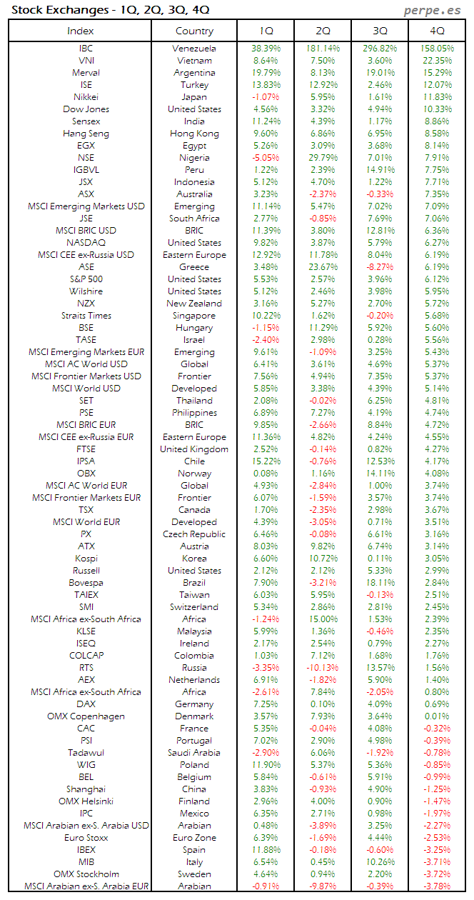 Bolsas Mundiales: Cuarto Trimestre