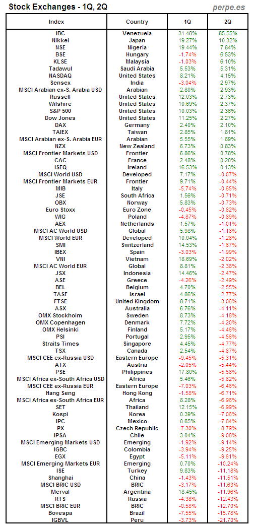 Bolsas Mundiales: Segundo Trimestre