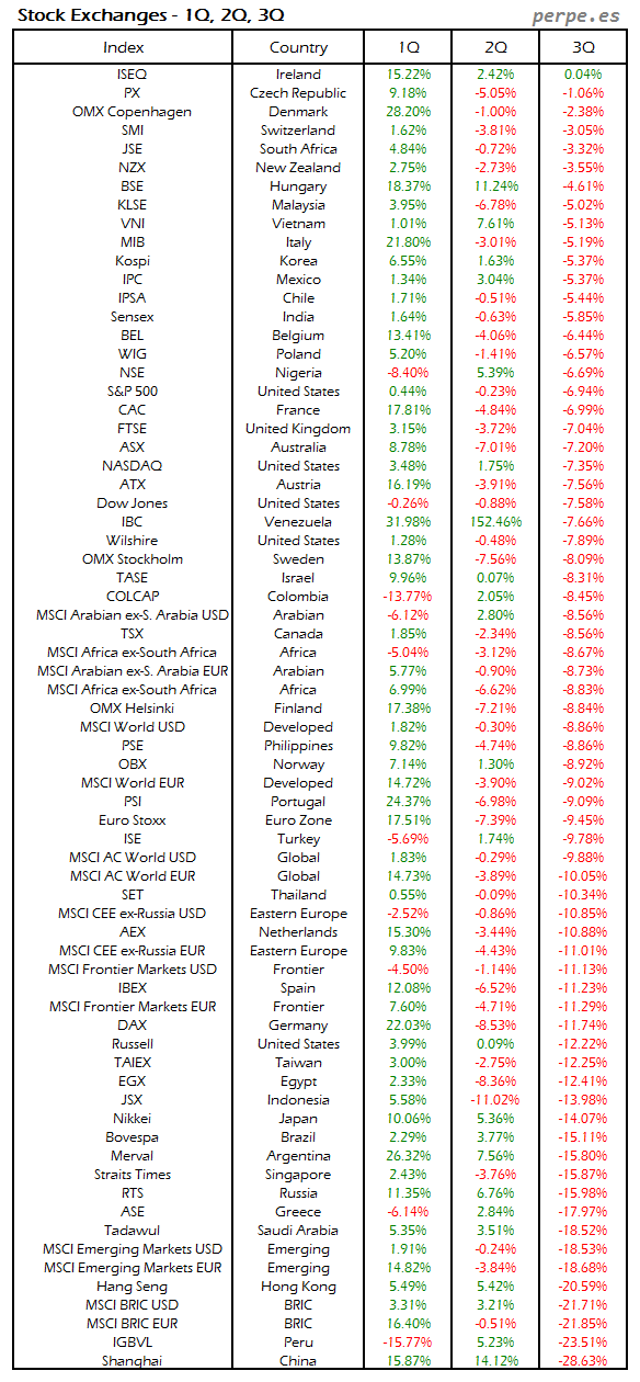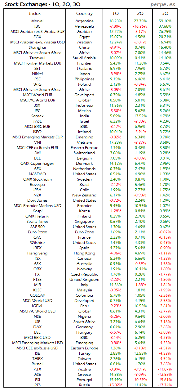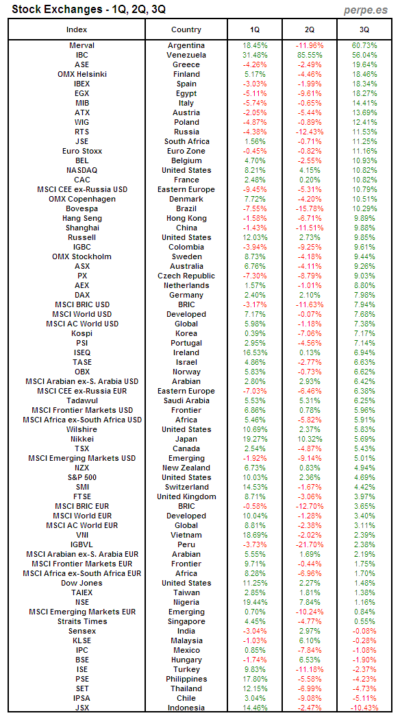 Bolsas Mundiales: Tercer Trimestre
