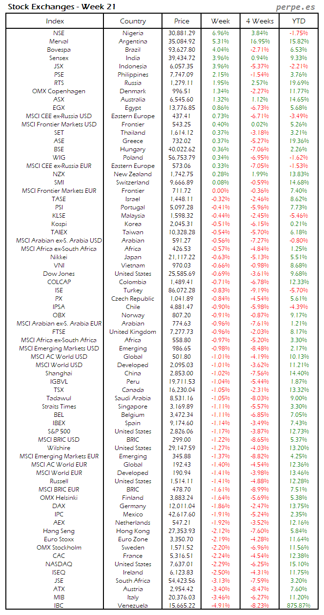 Bolsas Mundiales: Semana 21