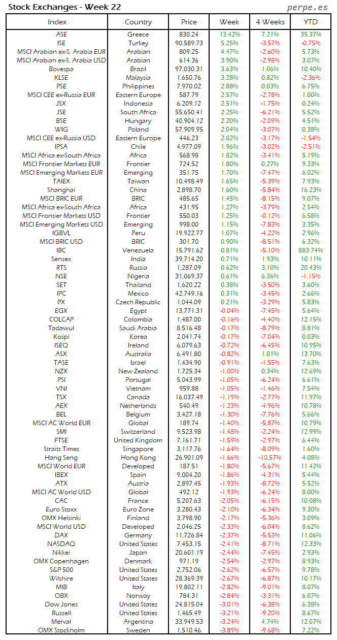 Bolsas Mundiales: Semana 22