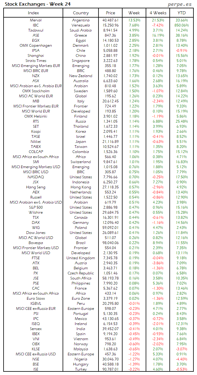 Bolsas Mundiales: Semana 24